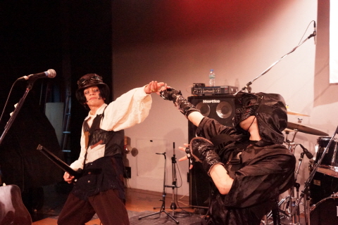 右で忍者が持ってるのはキヨミさんが持って出てきたライトセーバーです。