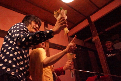 ラマ様が投げ銭用の籠をもってまわる。_人人人人_> 托 鉢 < ̄Y^Y^Y^Y ̄メカさま「後半黒沢君も出ますからね」