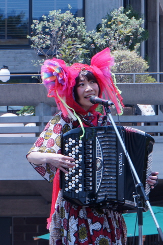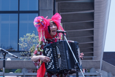 ちょっと珍しいお二人の楽器、ボタンアコーディオンとテルミンの紹介も。