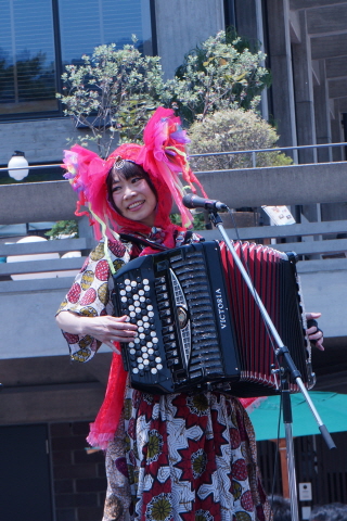 ちょっと珍しいお二人の楽器、ボタンアコーディオンとテルミンの紹介も。