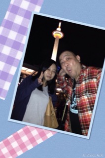 帰る前に京都タワーの前でツーショットをお願いしてしまいました。